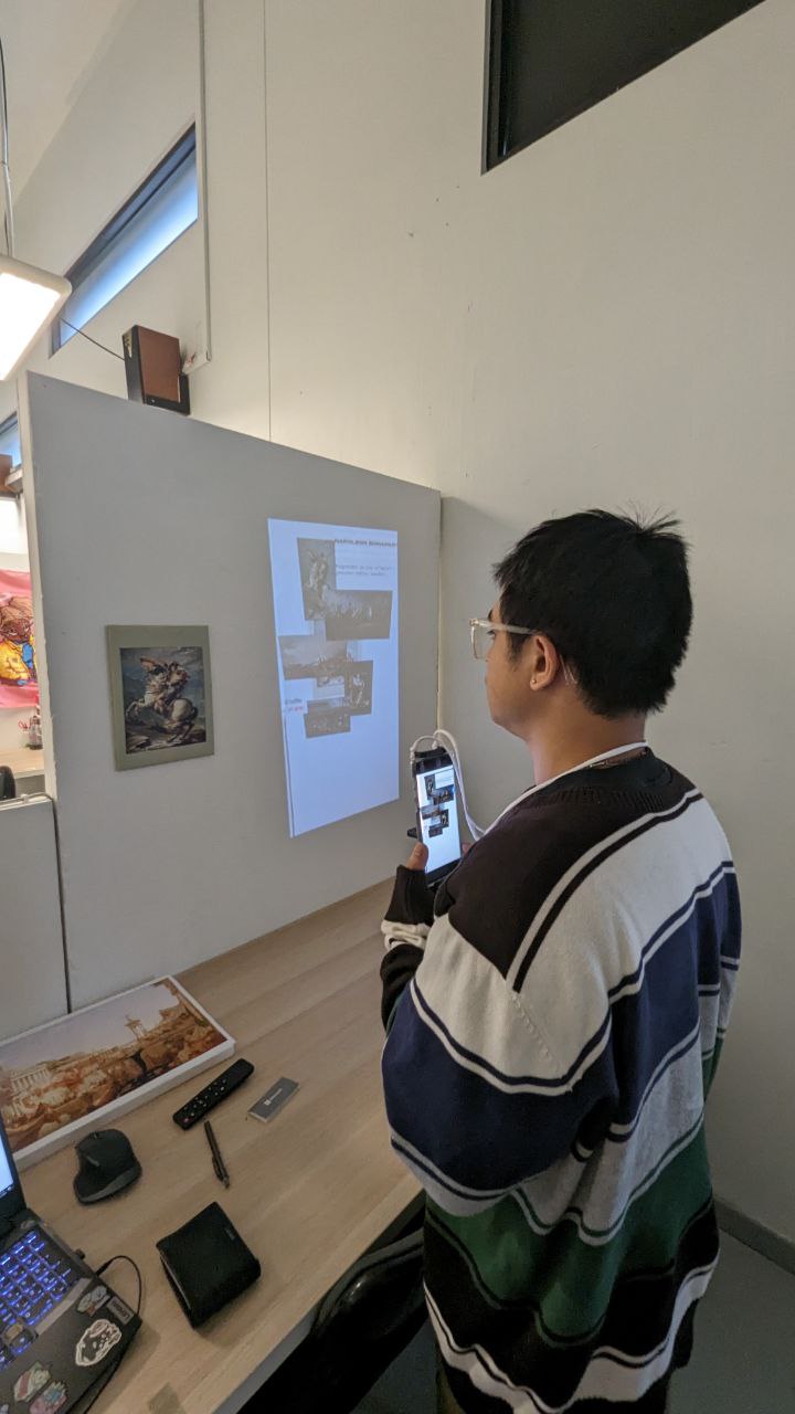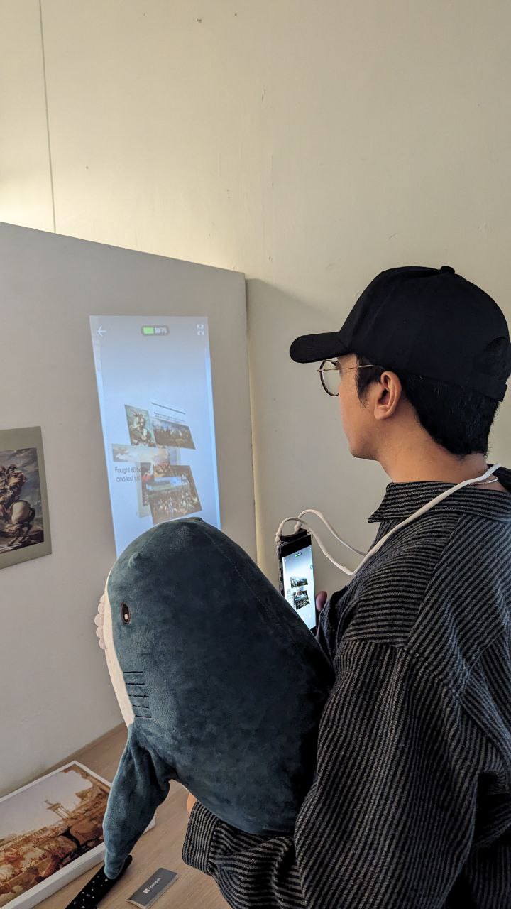 My goal for prototyping was to create a space where the user can interact with a painting through an AR experience without using any device. I noticed that most of the existing AR experiences require the user to look at the effects through a phone or a screen, which can be distracting and cumbersome. I wondered if there was a way to make the AR experience more immersive and natural for the visitors who want to appreciate the paintings without any barriers.